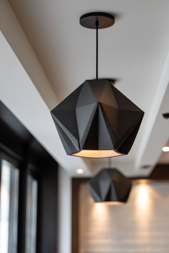 Choose from various geometric shapes—hexagons, triangles, or abstract forms—to match your style. Install singly for a minimalist look or in clusters for a more dramatic effect. Opt for dimmable bulbs to control ambiance. Seasonal decor can include colorful shades or filament bulbs for a vintage-modern mix.
