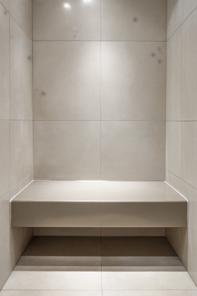 Imagine a slim, rectangular bench nestled into the shower corner or wall niche. Crafted from the same waterproof material as the tiles, it appears seamless and unobtrusive. Its minimalist profile doesn’t block light or movement, yet offers a generous surface for sitting or placing essentials. The textured surface prevents slipping, ensuring safety and comfort.