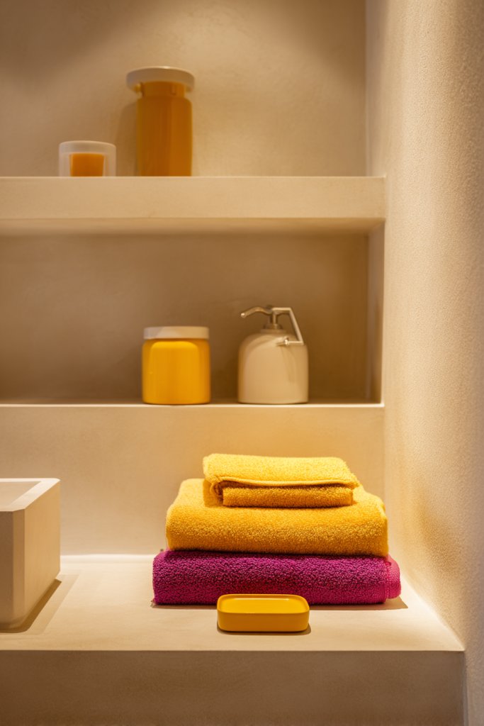 Imagine fluffy towels in vibrant hues folded neatly on open shelves or hanging from sleek hooks. Colorful soap dispensers, toothbrush holders, and rugs add contrast against neutral tiles and walls. The textures—knit, woven, or plush—bring tactile richness that invites touch. These accents create focal points and inject energy into the space.