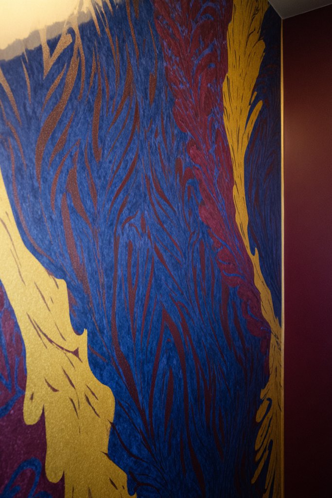 Imagine a wall covered in lively, colorful patterns—think large florals, abstract shapes, or geometric repeats. Bright hues like fuchsia, turquoise, or lime green make the pattern pop and energize the room. The textured surface of wallpaper adds depth, creating a layered, tactile feel. When paired with neutral furniture, it becomes the room’s showstopper. The bold design transforms a plain space into a vibrant sanctuary.