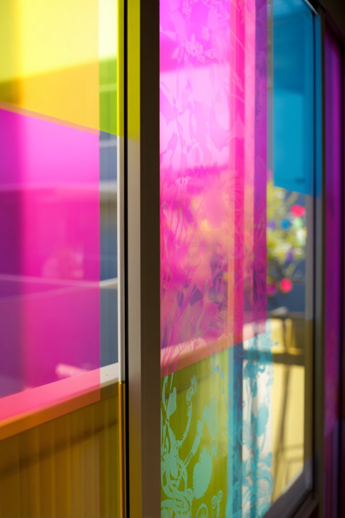 Want to add privacy and style without sacrificing natural light? Multi-colored window films bring a playful, vibrant touch to your windows. They transform plain glass into a colorful feature while blocking out prying eyes. It’s a simple, affordable upgrade that instantly livens up any room.