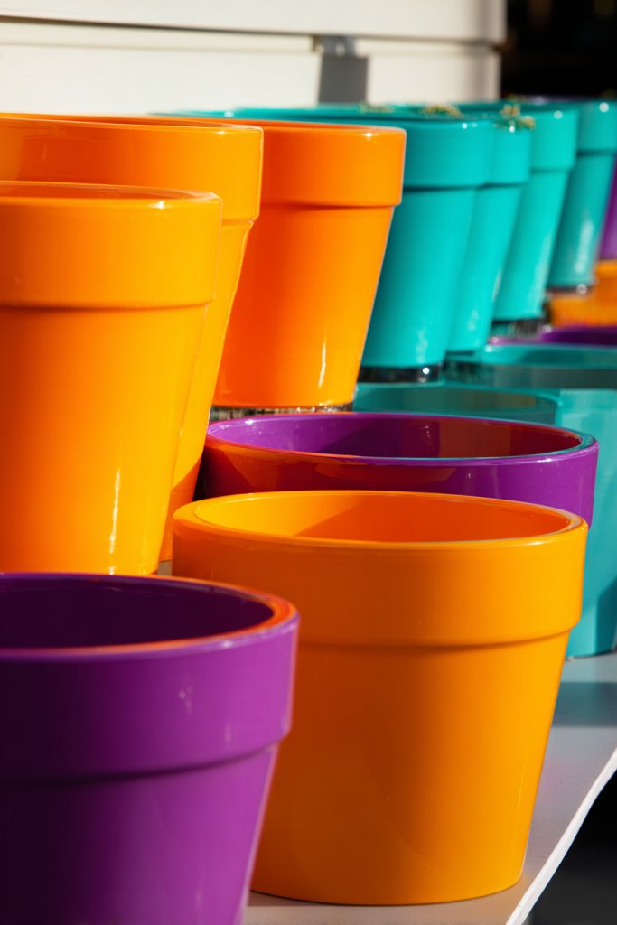 Think plant pots are only for greenery? Think again! Bright, colorful pots can brighten up your space even without plants. They add a splash of color and can serve as decorative objects, making shelves, tables, or corners stand out. It’s a playful way to add visual interest with minimal effort.