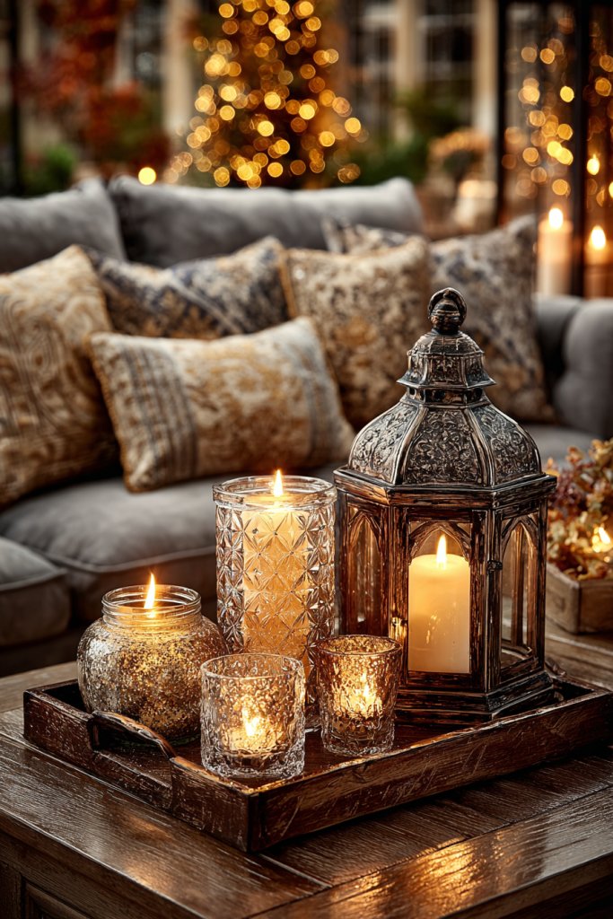 13. Place Ambient Candles and Lanterns for Soft, Flickering Light