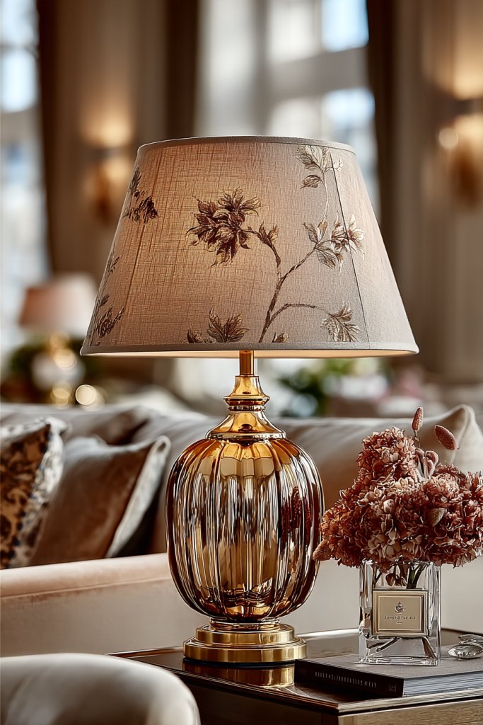 20. Use Warm Metallic Accents in Lamps and Decor Pieces