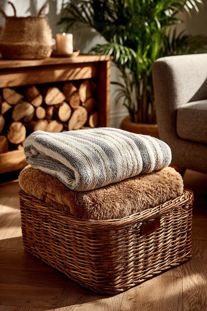22. Incorporate Natural Elements like Wooden Decor or Wicker Baskets