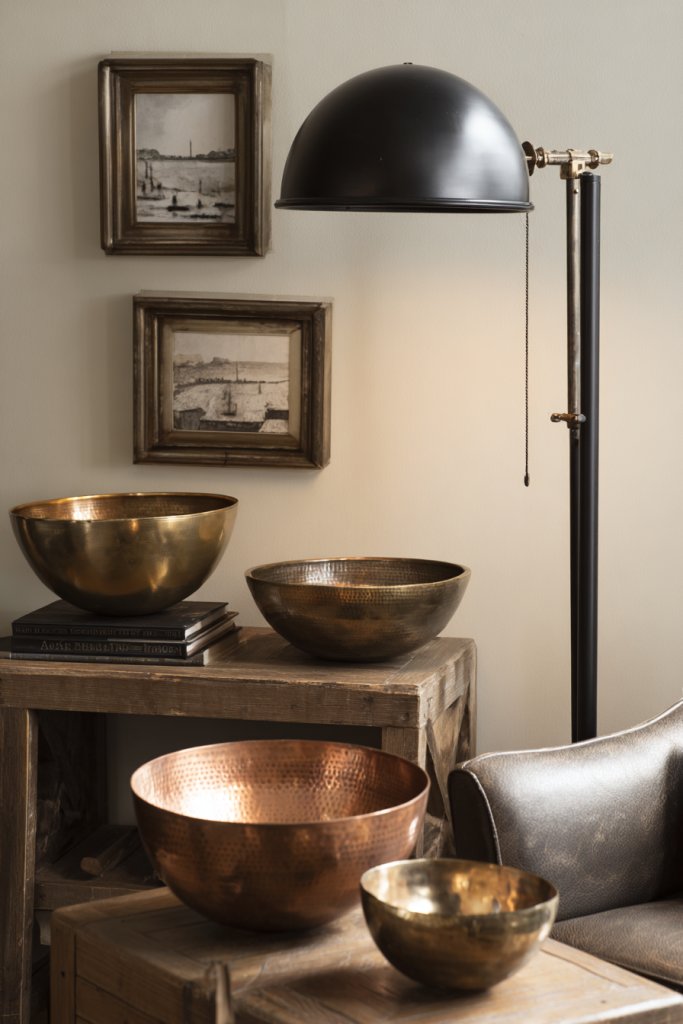 Personalize with small metallic accents—like vintage keys, decorative clips, or handles—that add character. Layer different finishes on accessories like picture frames or decorative trays. For a bold statement, create a focal point using a metallic gallery wall or a centerpiece in contrasting finishes. Mix textures with matte, glossy, and brushed surfaces.