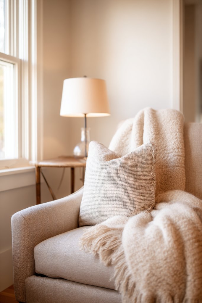 Start by choosing a base of neutral wall colors—preferably matte for a soft, velvety feel. Layer in textiles through throws, cushions, and rugs in varying textures such as faux fur, woven, or nubby knits. Select furniture in neutral shades—think linen slipcovered sofas or distressed wood accents. Incorporate plush rugs and soft lighting options like sconces or hidden LEDs behind coves to enhance the cozy vibe. Keep clutter minimal and let textures do the heavy lifting.