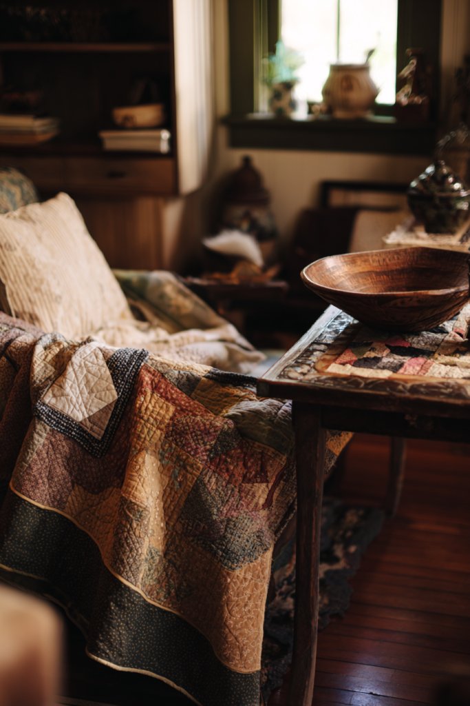 Visualize walls adorned with quilted heirloom blankets, vintage photos in handcrafted frames, or a shelf displaying handmade pottery. These elements add depth, history, and personality to your space. They tell stories and evoke nostalgia, making your home more than just a pretty picture—it’s a living memory.