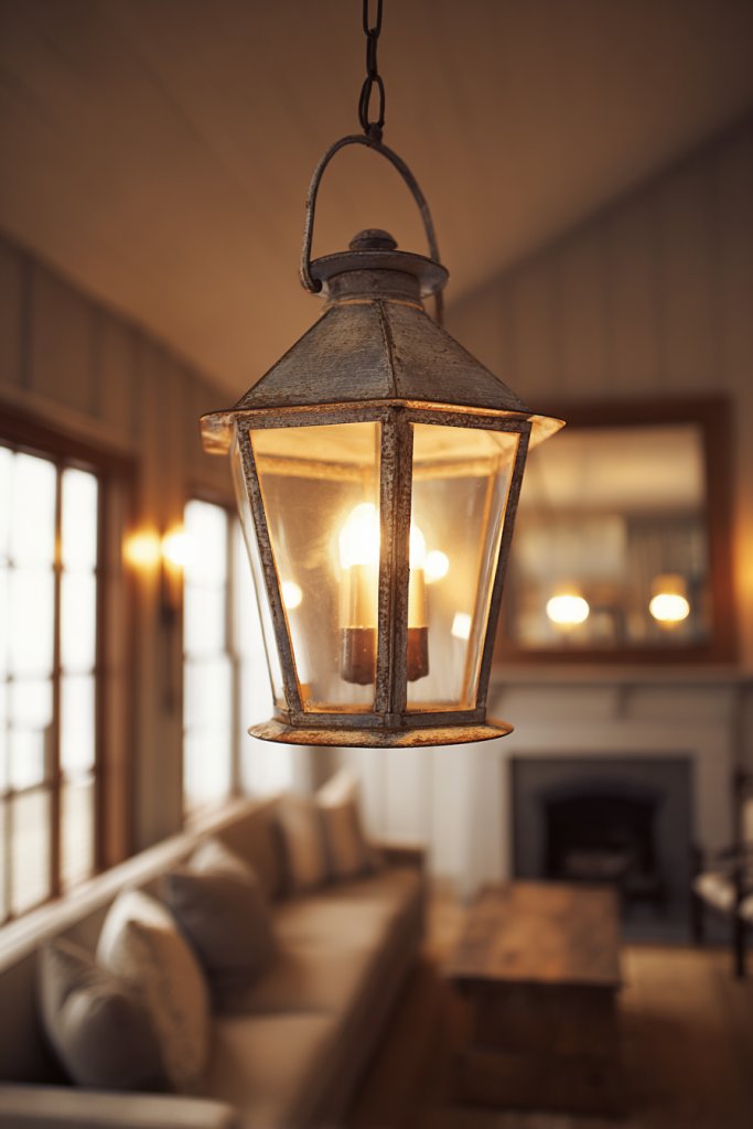 Lighting sets the mood, but generic fixtures often lack character. Vintage-inspired lantern pendants or wrought iron fixtures bring a warm, nostalgic glow that elevates your farmhouse living room. They’re the perfect finishing touch to create intimate ambiance and timeless charm.