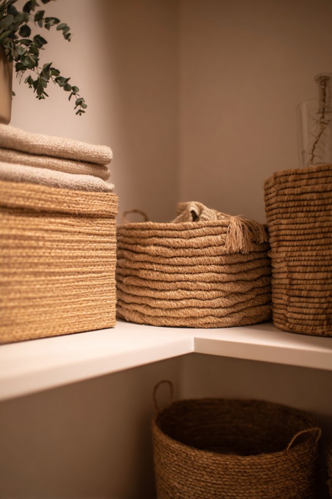 Choose baskets in natural, undyed fibers or with subtle dyes for a softer look. Use them in living rooms, bedrooms, or bathrooms for versatile storage. Keep the baskets clean by shaking out dust or a gentle vacuum. Elevate their look with decorative tags or fabric liners if desired. Regularly rotate contents to keep things fresh.