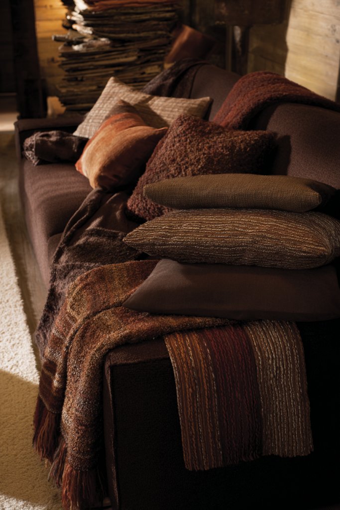 8. Moody Chocolate Brown Sofa with Layered Textiles