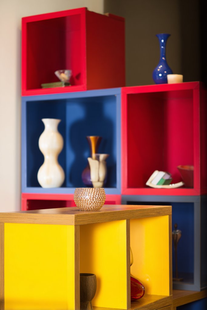 17. Incorporate Unconventional, Artistic Storage Solutions (e.g., Colorful Cabinets or Open Cubes)