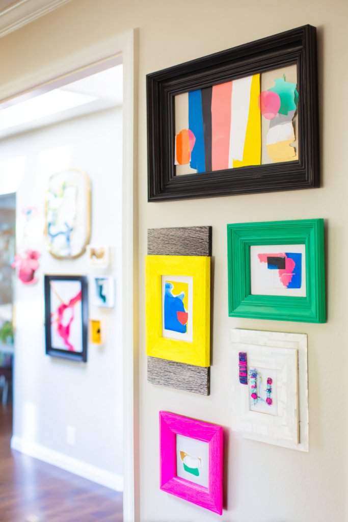 Adjust the color palette to match your room’s vibe—go for pastel tones for a soft look or bold primaries for maximum impact. If your space is small, limit the number of frames to avoid clutter. For the holidays or seasons, swap out some pieces for themed art or photos. You can also incorporate textiles or decorative paper behind frames for extra flair.