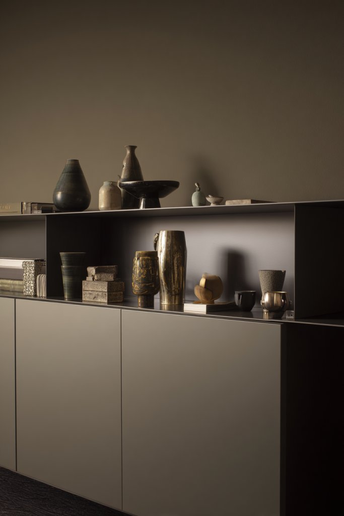 6. Display a Collection of Unique Decorative Objects on Open Shelves or Sideboards