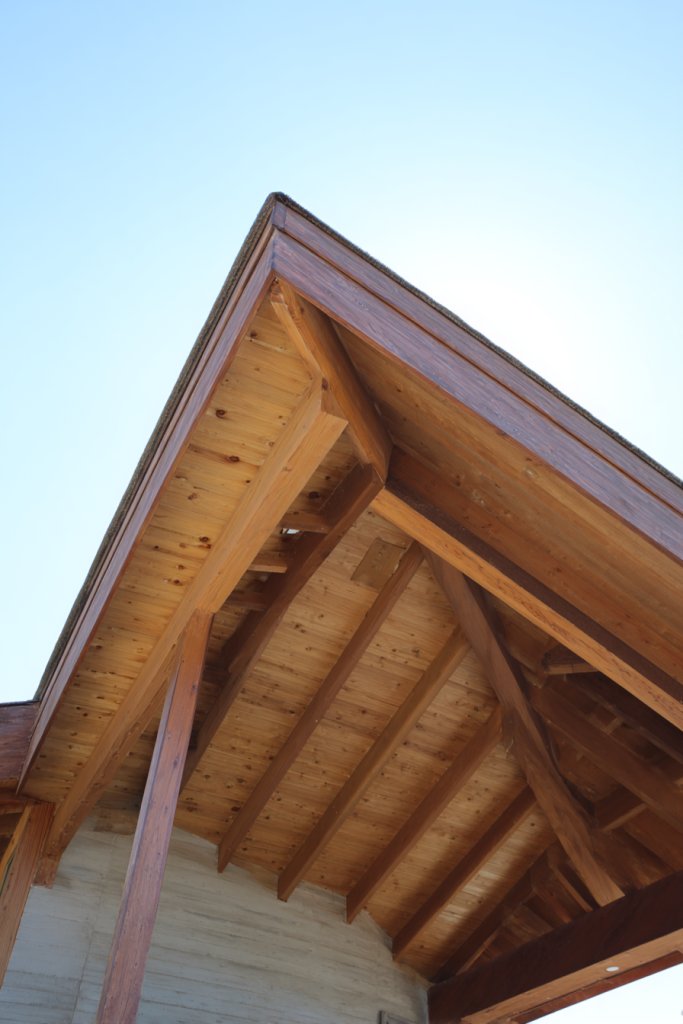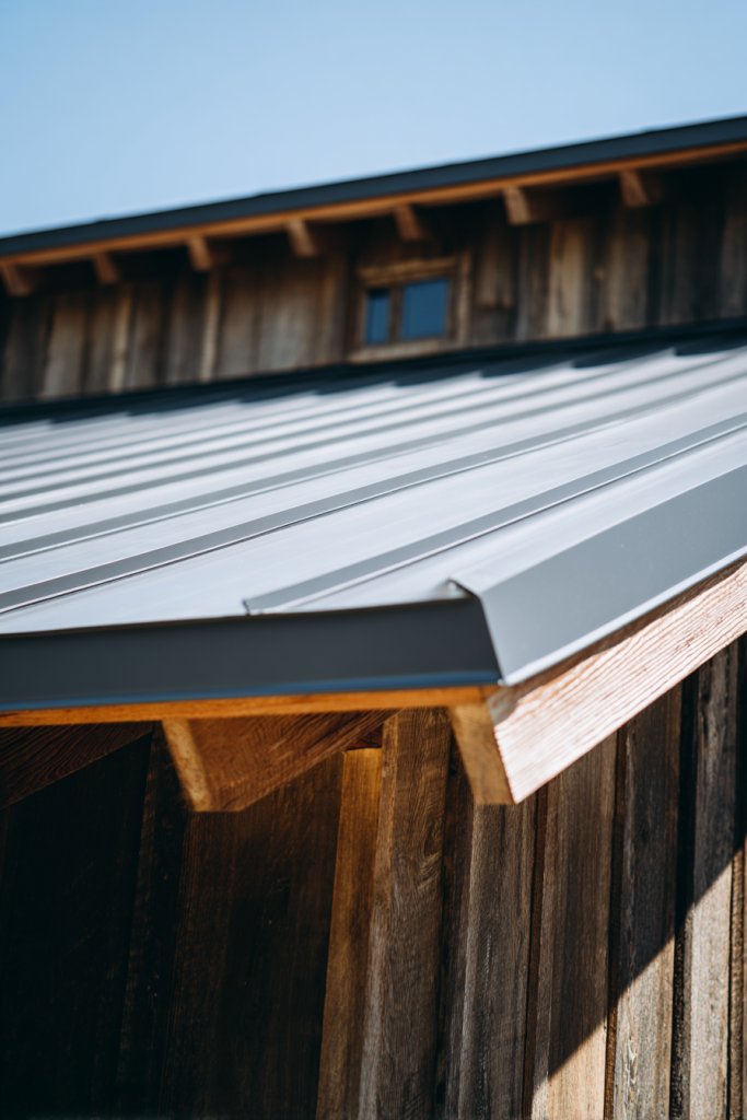 11. Metal Roof with Exposed Wooden Eaves for Rustic Texture