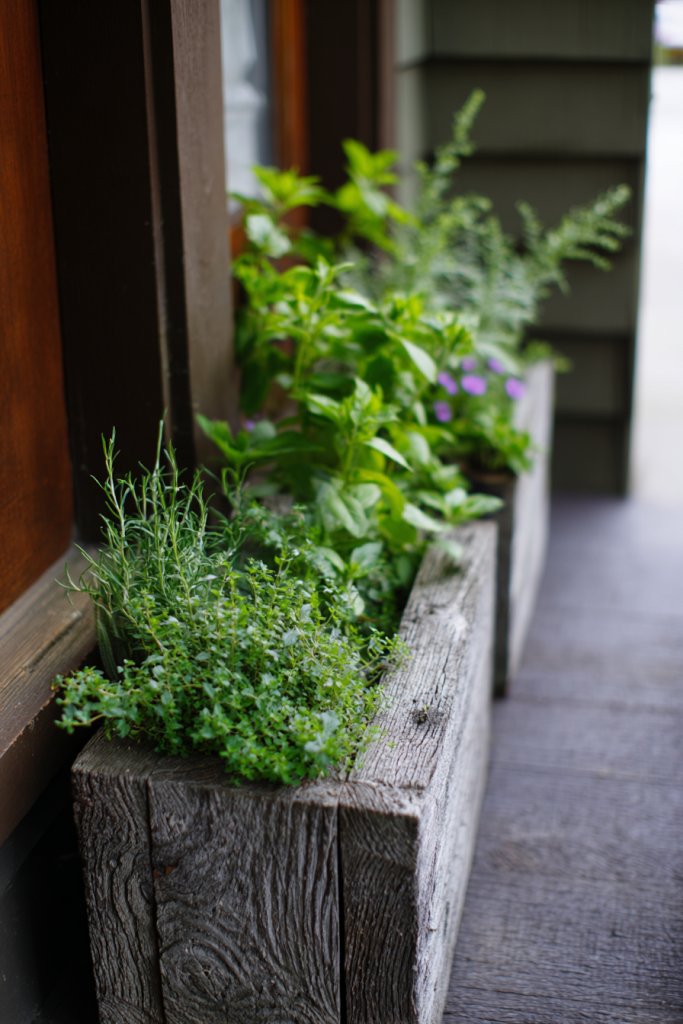 Picture rustic wooden boxes or barrels sitting on your porch or along walkways, overflowing with fragrant herbs like rosemary, thyme, or basil. Perennials like lavender or sedum add lasting beauty. The natural wood textures and lush greenery combine to create a cozy, inviting scene. This setup not only beautifies but also provides fresh ingredients for cooking.