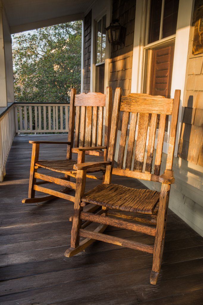 2. Cozy Front Porch with Rustic Wooden Rocking Chairs