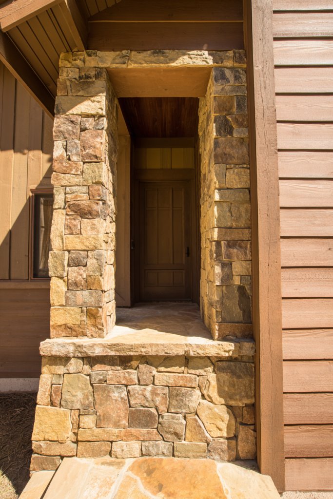 19. Natural Stone Accents Around the Entrance for Textural Contrast