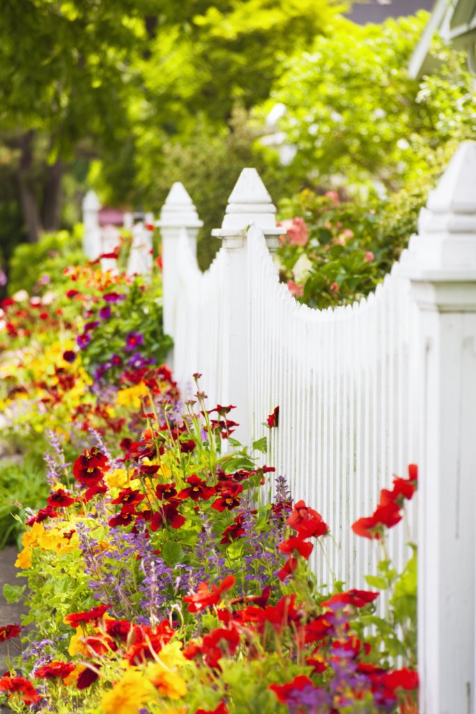 3. Charming White Pickett Fence with Vibrant Flower Beds