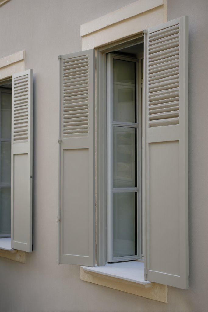 6. Shuttered Windows with Soft, Neutral Tones for Subtle Elegance
