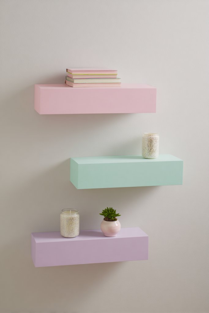 10. Functional Yet Fun Floating Shelves in Soft Pastel Shades