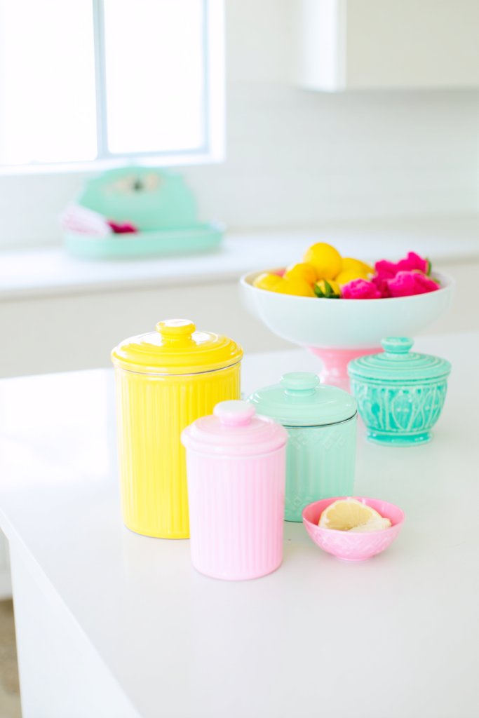 Choose durable, dishwasher-safe accessories in your favorite shades. Start with a few statement pieces—like a colorful utensil holder and a set of bowls—and expand over time. Arrange items thoughtfully to keep your workspace functional. Incorporate small, colorful storage containers for spices or dry goods. Regularly clean and organize to maintain the cheerful look.
