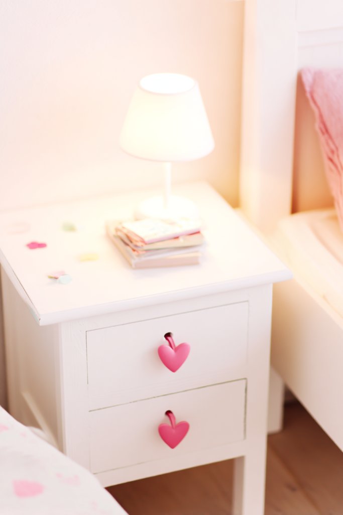 15. Adorable Nightstands with Drawer Handles in Heart or Bow Shapes