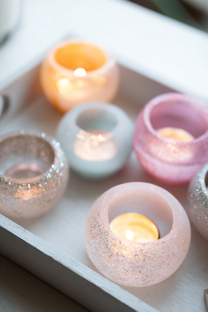 17. Creative DIY Candle Holders with Pastel or Glitter Accents
