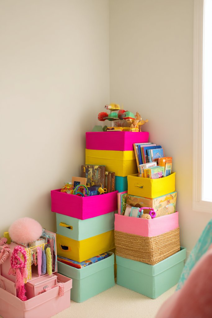 19. Playful Storage Solutions with Bright Bins and Baskets