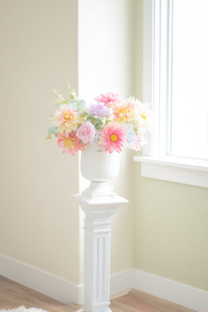 23. Decorated Plant Stands with Faux Flowers or Stylish Vases