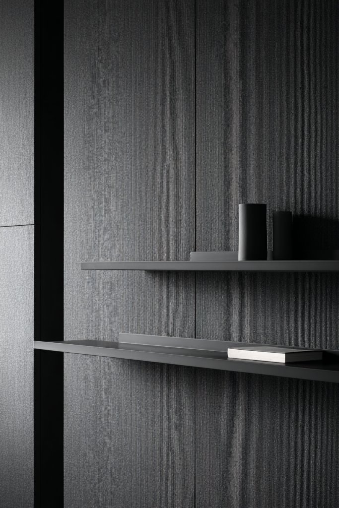 7. Monochrome Color Palette with Textured Wall Panels for Visual Depth