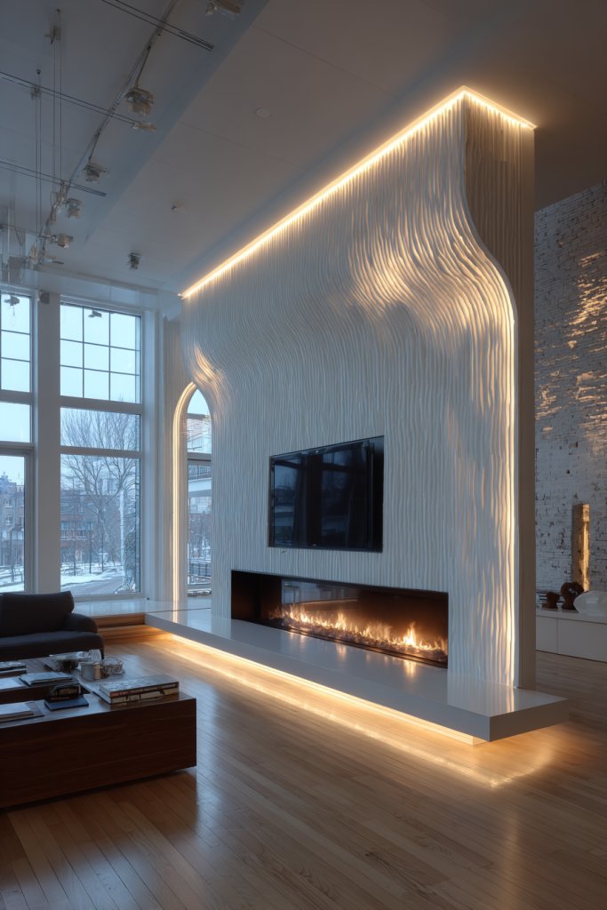 Vertical paneling with integrated LED lighting offers a sleek, high-tech vibe that’s perfect for modern lifestyles. It transforms a simple wall into a captivating focal point that impresses guests and elevates your decor. Once installed, it’s a statement of sophistication and style. Ready to light up your living room in a whole new way?