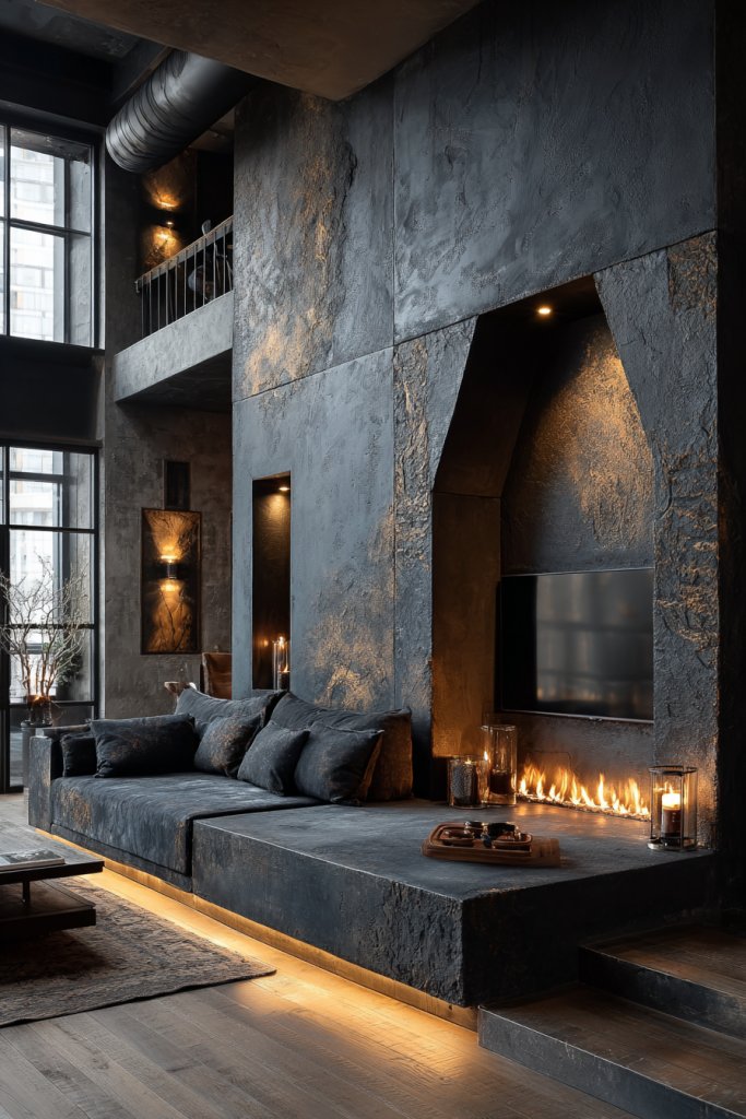 Decorate the surrounding area with natural elements like wood beams or metal fixtures. Incorporate warm lighting to highlight the texture and create ambiance. Add decorative objects made from natural fibers or metals that complement the stone theme. Periodically clean and seal the stone for long-lasting beauty.