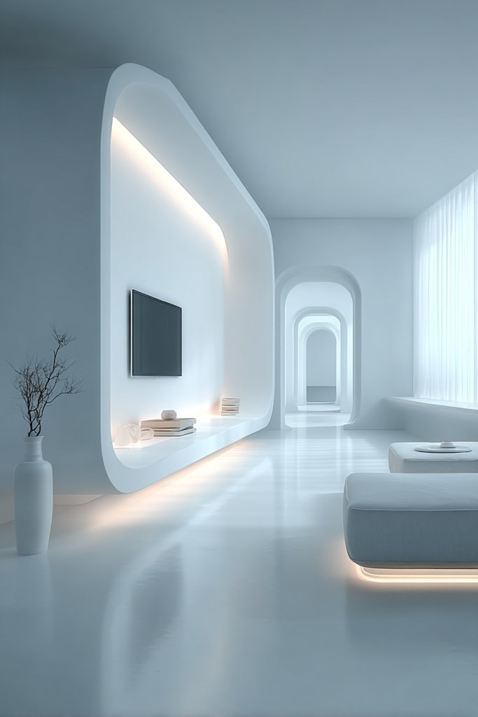Start with a high-quality, low-profile wall mount designed for flush installation. Locate wall studs and mark the mounting points carefully. Attach the mount securely to the wall, then install the TV bracket, ensuring it’s level. Conceal all cables with a cable concealment system or run them inside the wall if possible. Finish with a smooth coat of white paint or wall covering to reinforce the minimalist theme.