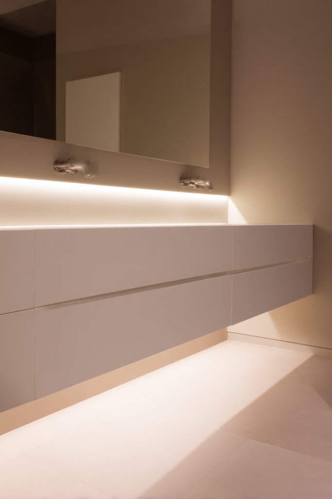1. Sleek Floating Vanities with Under-Cabinet Lighting for a Contemporary Look