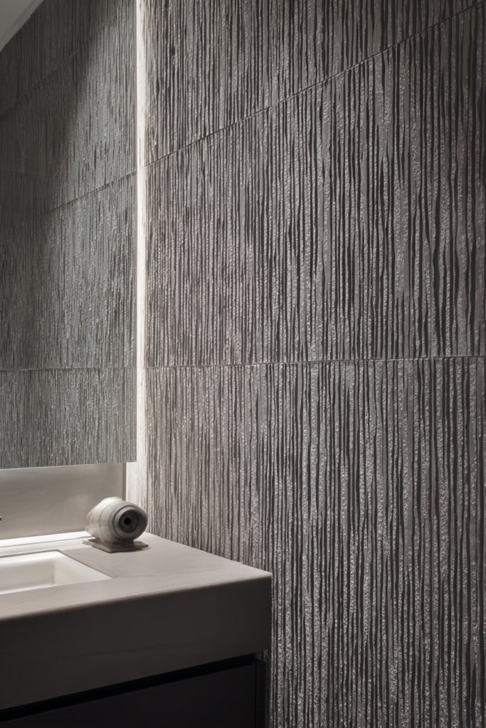 13. Vertical Wall Cladding with Textured Tiles for Depth and Dimension
