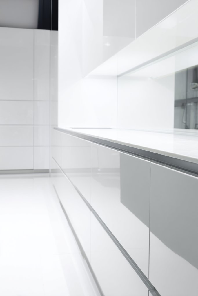 1. Sleek handleless cabinetry with high-gloss finishes for a seamless, contemporary look