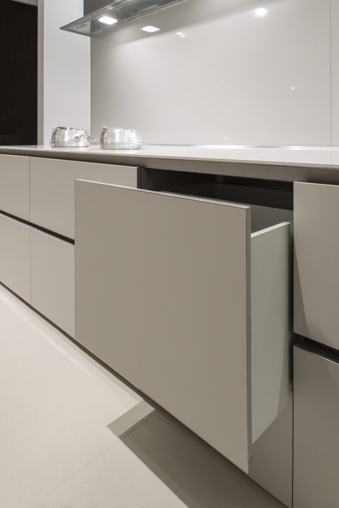 Ever opened a drawer and been greeted with chaos? Cluttered, noisy drawers are a common frustration in even the most stylish kitchens. Integrated soft-close drawers with organized dividers fix this by offering smooth operation and tidy storage. They’re the ultimate upgrade for those who value both practicality and luxury.