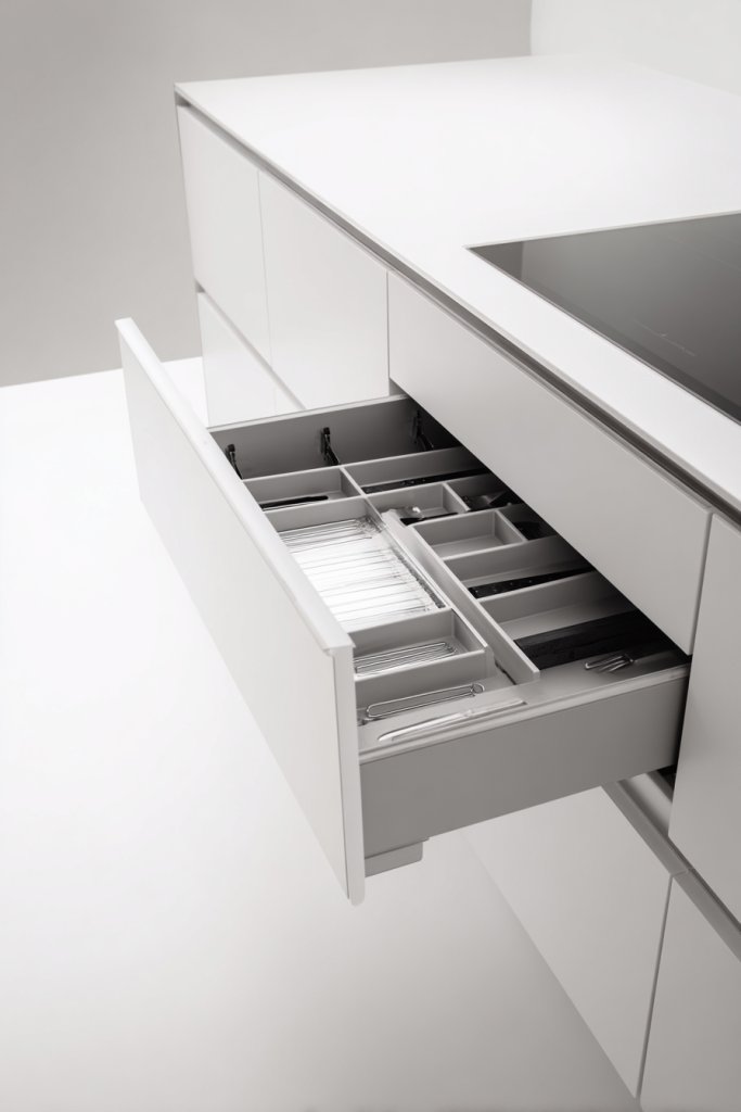 15. Integrated, soft-close storage drawers with organized dividers for practicality