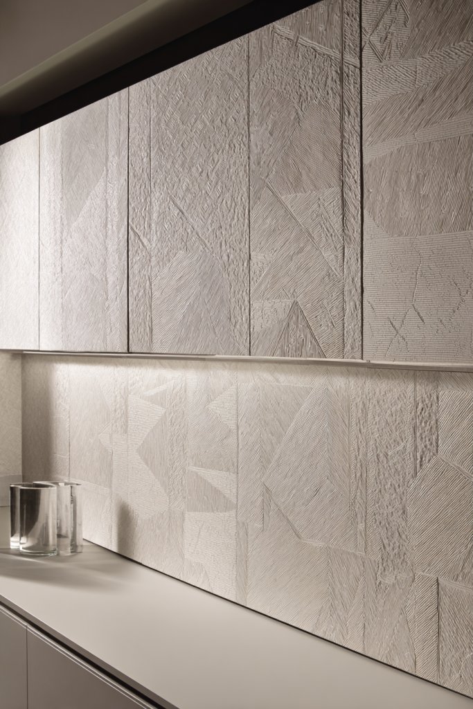 Imagine walls adorned with sculptural panels in neutral tones, featuring gentle waves or intricate geometric patterns. The textures catch light differently throughout the day, adding movement and depth. Paired with minimalist cabinetry and sleek surfaces, these wall treatments turn plain walls into conversation starters, blending art with architecture seamlessly.