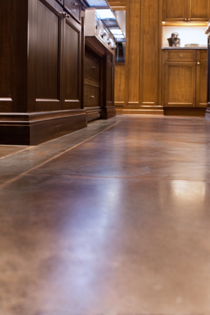Choose warm wood tones like oak or walnut for a cozy feel, or go darker for a more dramatic look. Polished concrete can be customized with stains or embedded aggregates for unique textures. Seasonal updates might include adding textured rugs or runners to enhance comfort and style. Complement the flooring with matching or contrasting cabinetry to define zones.