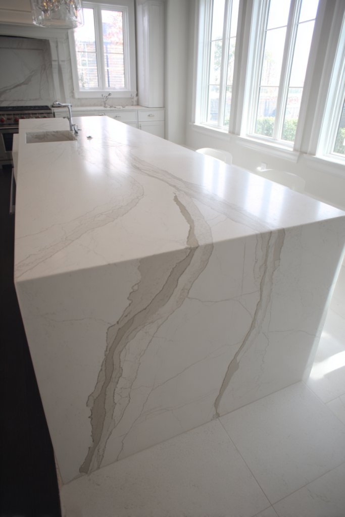 2. Marble or quartz countertops with waterfall edges for a touch of opulence