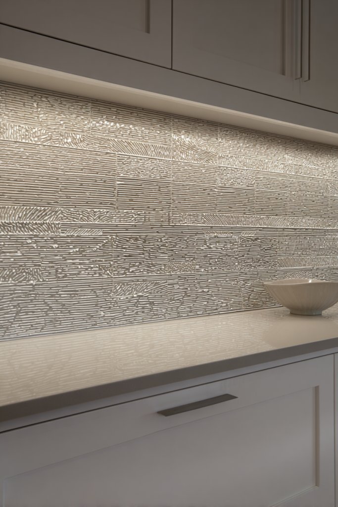 8. Textured backsplash tiles with subtle patterns for visual interest and depth