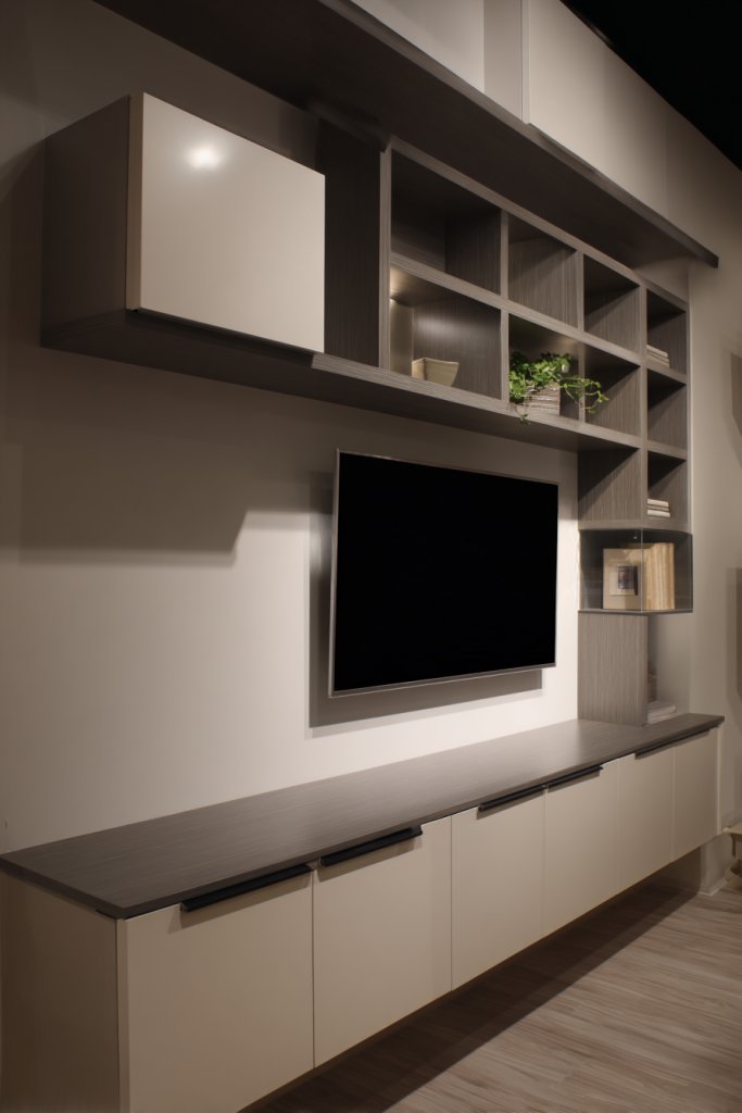 Want a versatile TV wall that balances display and concealment? A linear combination of open and closed storage offers the best of both worlds. It keeps your space tidy while giving you room to showcase or hide items as needed. Who says practicality can’t look stylish?