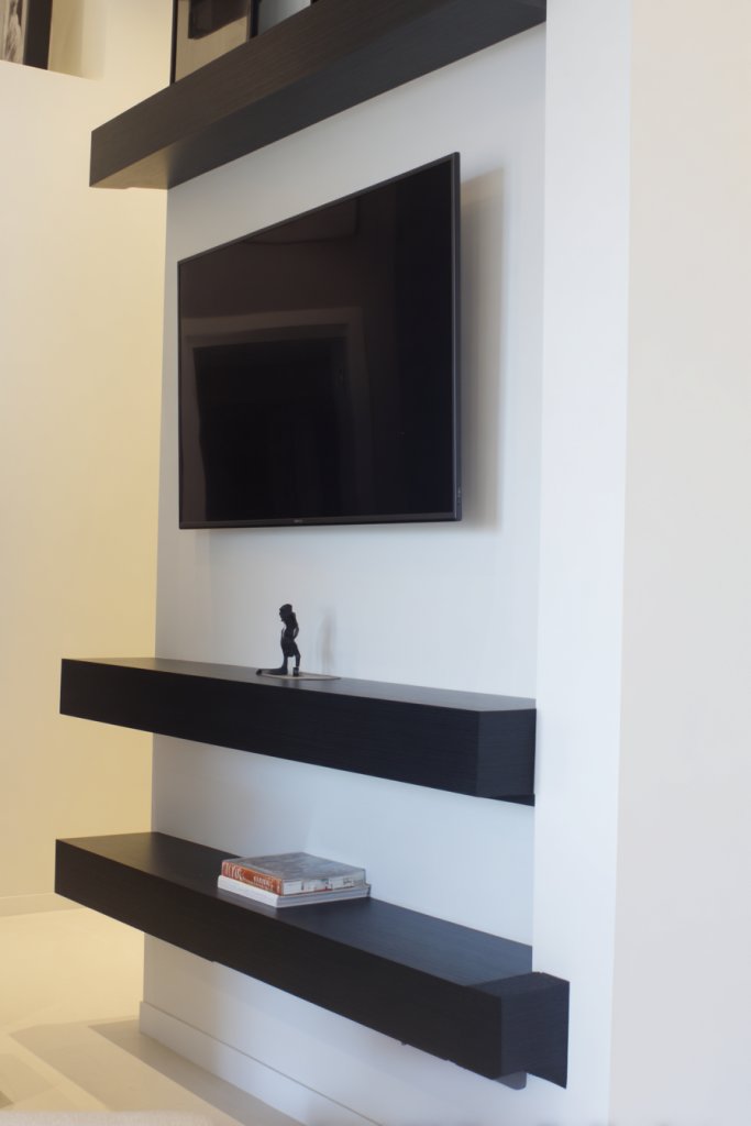 Begin by choosing a sturdy wall mount that supports your TV’s weight. Install floating shelves at eye level or slightly above for optimal viewing. Use a level to ensure perfect alignment—nothing ruins a minimalist aesthetic faster than crooked shelves. Secure the shelves with hidden brackets or wall anchors, depending on your wall type. For added flair, incorporate LED strip lighting beneath the shelves, but avoid pendant lights or table lamps to keep the look streamlined.