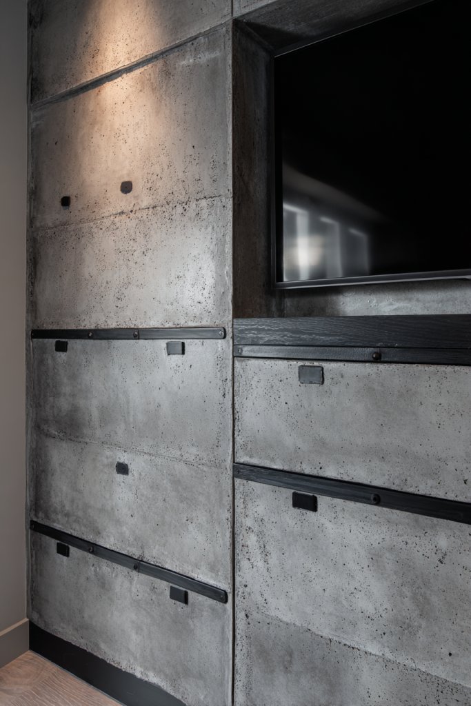 5. Concrete Accent Wall with Embedded Storage