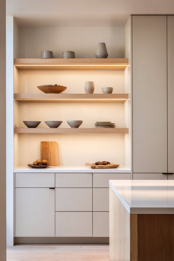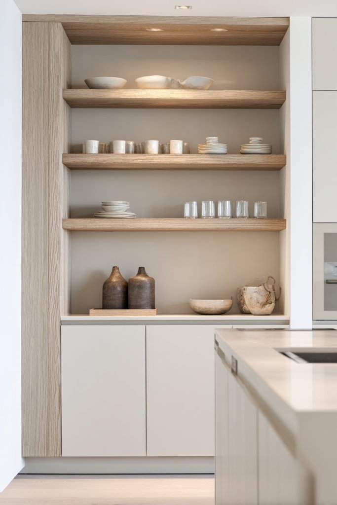 4. Open Shelving and Minimalist Cabinets for a Clean, Airy Feel