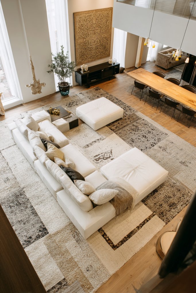 Using rugs and flooring patterns to define spaces is a simple yet powerful technique. It boosts your confidence in creating visually interesting, functional layouts. It elevates your home’s style while making it more organized and inviting.