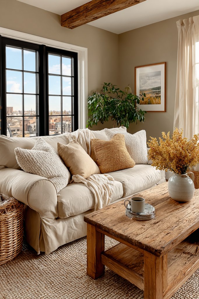 Looking to add instant coziness without clutter? Neutral-toned textured throw pillows and blankets create a layered, inviting environment. They boost comfort and style simultaneously, making your space feel like a retreat. Who says relaxation can’t be stylish?