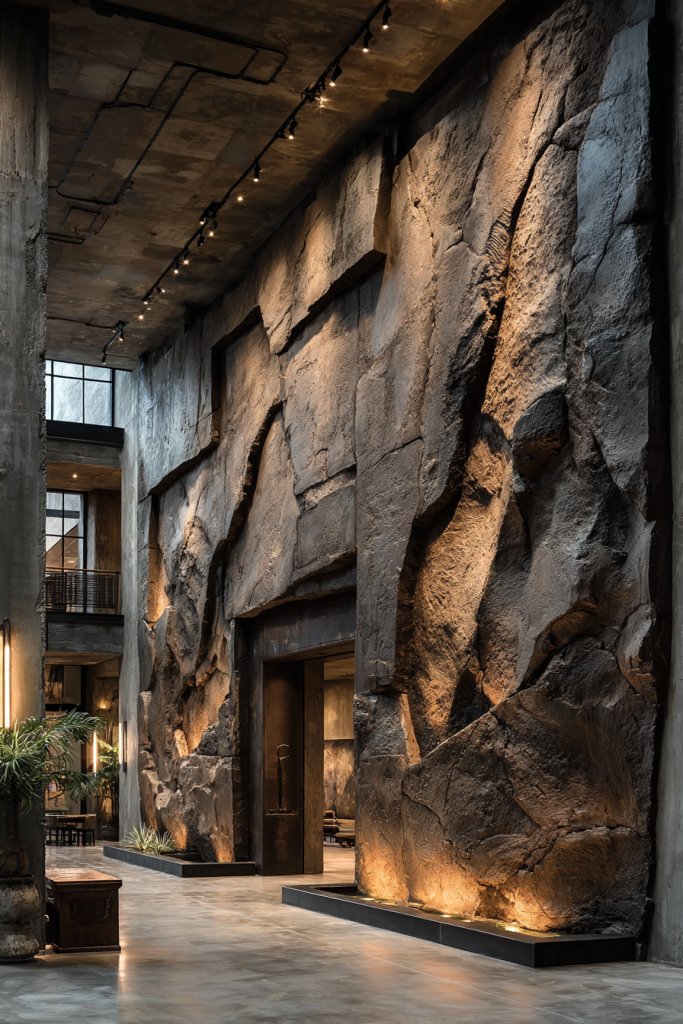 12. Create a Focal Point with a Large, Textured Clay or Concrete Wall Panel